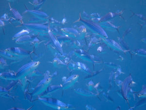 En plongée, tous les sens sont en alerte, en apesanteur et animés parfois de discours silencieux. C’est une façon d’être au monde paisiblement, en interaction avec la palanquée mais aussi d’être partie prenante de la vie marine le temps de quelques immersions, sans y toucher ni l’effleurer, simplement par des observations mutuelles. C’est une forme de randonnée horizontale et verticale, propice à la réflexion mais aussi d’une quête de sens un peu mystique, une forme d’évasion. Le monde du silence est en fait parsemé de bruissements, celui de la vague, du mouvement des créatures marines mais aussi des bulles d’air des plongeurs, à un rythme régulier et méditatif et en bref, une façon d’habiter le monde. « Seul le voyage intérieur est réel » selon Ella Maillart et je ne peux qu’abonder dans son sens.
