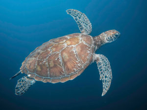 A l’occasion d’un voyage à Bornéo à la fin des années 2000 sur l’île de Mabul, j’ai eu la chance de tomber en snorkeling sur une tortue imbriquée, (une des sept espèces de tortues marines), puis sur une deuxième, et une troisième, alors qu’elles paissaient paisiblement sur des blocs de corail chatoyants dont elles débarrassent les algues parasites. Encouragé et ébloui par ces rencontres, je me suis hasardé en profondeur où je fus stupéfait et émerveillé de voir un poisson-lion noir volant tranquillement dans la colonne d’eau en apesanteur (Pterois volitans ou rascasse volante). Cela m’a immédiatement fait penser au magnifique ouvrage de Nicolas Bouvier Le Poisson Scorpion, et à mon sens c’était plus probablement un poisson-lion dans un bocal qui y est décrit.
